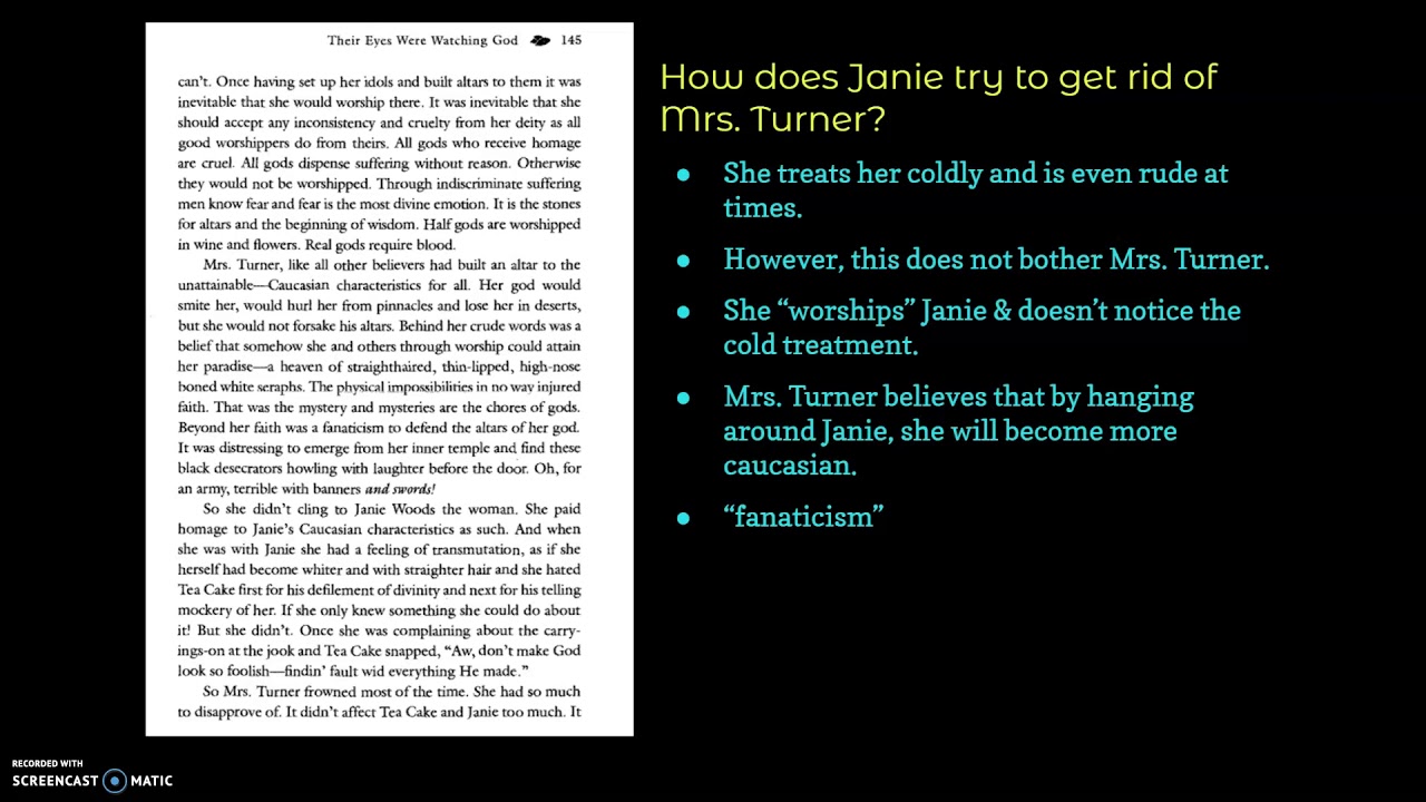 Turner Chapter 16 provides the clearest perspective on. Their Eyes Were Watching God - Ch. When the planting season ends Janie and Tea Cake decide to stay on in the muck.